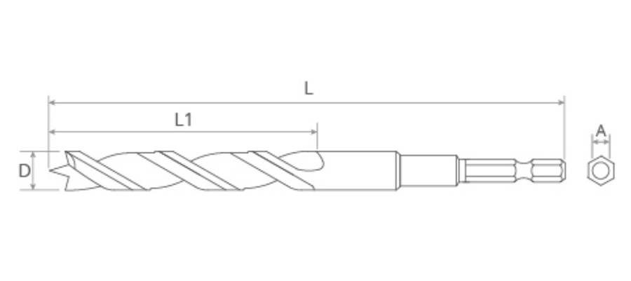溝付き六角シャンクにより、ドリルチャックやビットエクステンションでの滑りを防ぎます。